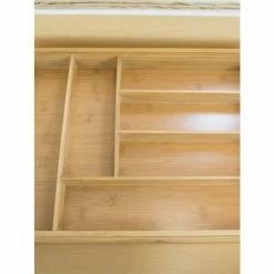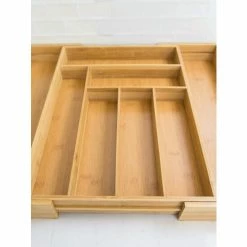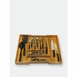 Perfect for your growing collection of silverware, the expandable bamboo flatware and silverware drawer organizer offers 8 generously sized compartments when fully expanded. Each section measures 2.5 inches deep, allowing you to fit larger items like large cooking spoons and ladles, spatulas, whisks, forks, and cork screws. It measures 13″ x 2.3″ x 19″ and fully expands to 22.8″ x 2.3″ x 18″ .Great to use in the kitchen to organize gadgets and utensils and versatile enough to use in the bathroom to organize accessories and supplies. Beyond the home, this organizer also handy in the office for organizing pens, scissors and so much more. Inserts are securely attached to the base keep items neatly separated for a more organized look. The unit is easy to clean. Simply hand wash with warm water and gentle soap. Dry thoroughly. Use canola oil to preserve finish. Do not use in the dishwasher. Item dimensions may differ slightly from actual product. Please allow a slight deviation in measurement due to manual measurement. Color and finish may differ due to differences in monitor displays.