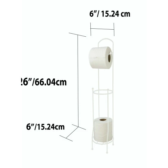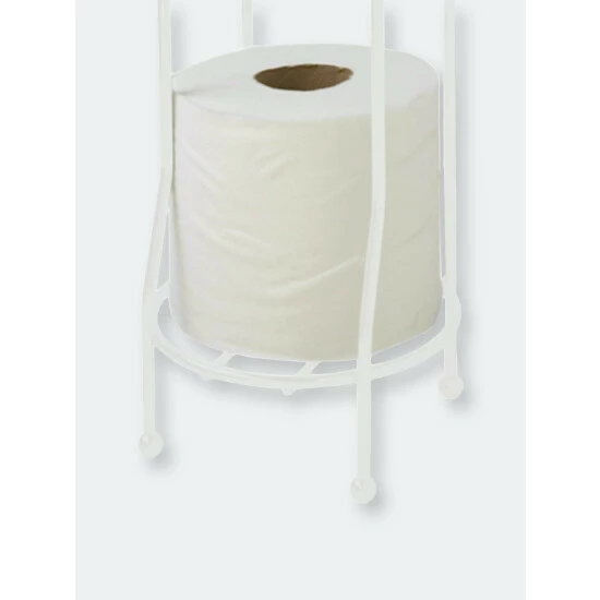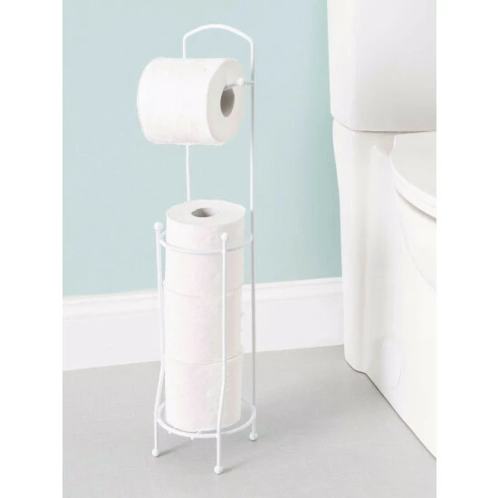 Never worry about running out of toilet paper again. This free-standing toilet paper holder keeps three extra rolls in its open base, and dispensing one on the top. Its sleek design fits neatly in the corner without taking away from your carefully curated decor or alongside the toilet consuming up so much floor space. Toilet paper not included.