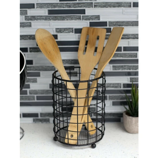 – Large capacity: Roomy container with open scroll work holds whisks, spoons, and other frequently used kitchen tools close at hand. Takes minimal space and helps to free your drawers from clutter