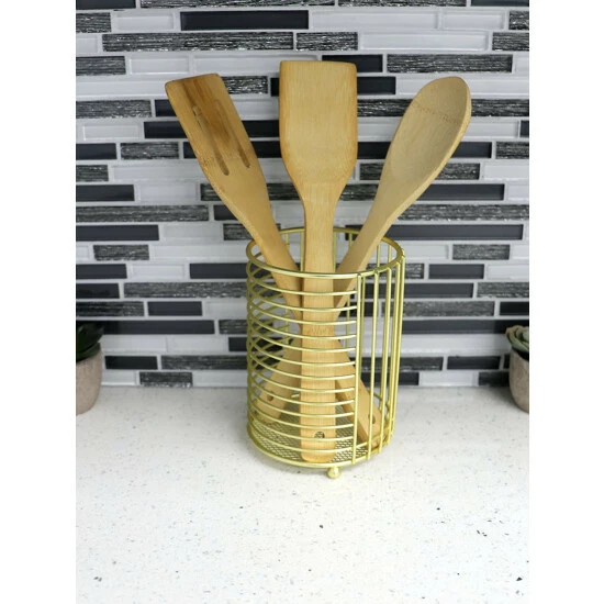 – Large capacity free standing utensils keeps whisks, spoons, and frequently used utensils close at hand