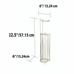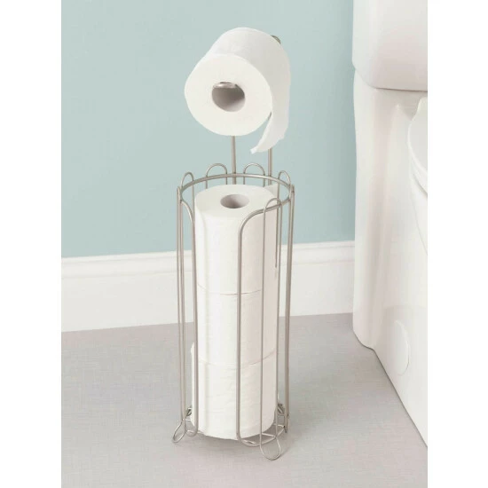 Instead of enclosed toilet paper holders that make it difficult to know how much you have on hand, the base of this toilet paper holder features an open middle so you can easily know when you need to load it up with your spare rolls. Elegant and practical, it’s spacious enough to take any size toilet paper roll, including jumbo sized in the reserve and conveniently dispenses one at the top. The stand features raised feet that elevate the toilet paper so it doesn’t touch the floor where it can easily get dirty. And the free-standing design makes it great to place it near the toilet tank or the in the corner.