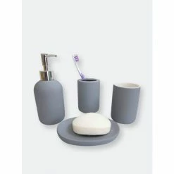 – Fully Functional 4 Piece Bath Ensemble: 4 Piece rubberized ceramic bathroom accessory set adds style and function to the counter or vanity with its rubber ceramic material.