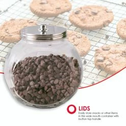 Clear up the counter and welcome in a retro vibe to the kitchen with this traditional glass candy jar. With a 91 oz. capacity, it’s big enough to store a generous portion of your favorite sweet treats without having to constantly refill. But should you need to, the clear glass makes it easy to know when it’s time stock up on your inventory. The stainless steel lid rests loosely on the top of the jar for easy removable. The wide mouth opening is perfect for easy scooping of items within the jar. Put this versatile jar to work organizing a variety of items in the home in office, from your stash of coins to paper clips and other small office supplies.