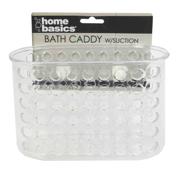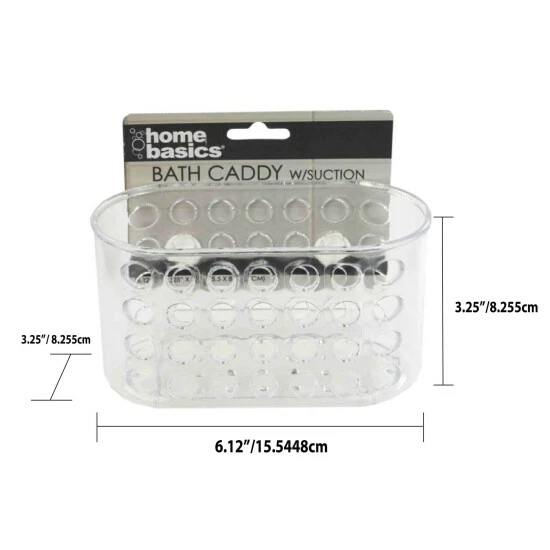 A lightweight alternative to metal caddies and a great way to end the countertop clutter, this large plastic suction caddy keeps all your shower and bath necessities at the ready. No tools or drilling required to install. With super strong back suction cups for stabilizing the caddy, never worry about the caddy shifting out of place or tipping over. Place it on any non-porous surface such as tile, glass, and some metals. Great for holding bottled shampoos and soaps, razors, loofahs. It also features multiple perforations that provide slight transparency while allowing for quick draining of all the contents inside between showering, bathing, and cleanings. Hand wash recommended. Suction cup mounted install. Suction cups included. Item dimensions may differ slightly due to the unique nature of the product. Color and finish may also differ from the images shown due to differences in monitor displays. Props and accessories are not included.