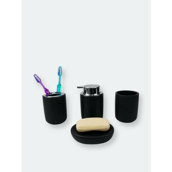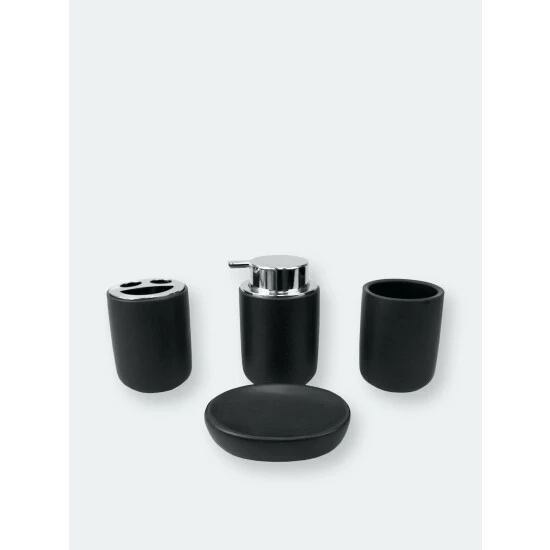 – 4 piece bathroom accessory set adds style and function to the counter or vanity with its chip-resistant ceramic exterior and simple design