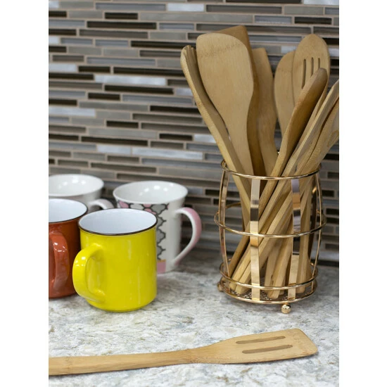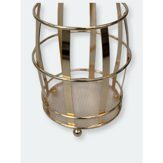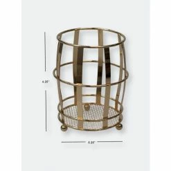For a glamorous gathering spot for your utensils to rest, this lovely holder from the lyon collection offers a luxurious home to store it all. No more fumbling through cluttered trays or rummaging through overstuffed cupboards, this free-standing piece positions all your essentials upright for easy access. A wired-mesh bottom, make it great to toss in damp silverware for drying after dish washing, while the wide mouth provides ample room for a huge stack of cooking tools. Aside for it’s many applications in the kitchen, the versatile holder does a stand up job as desktop organizer keeping your pen, pencils, and other office supplies close at hand.