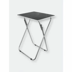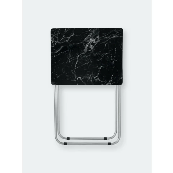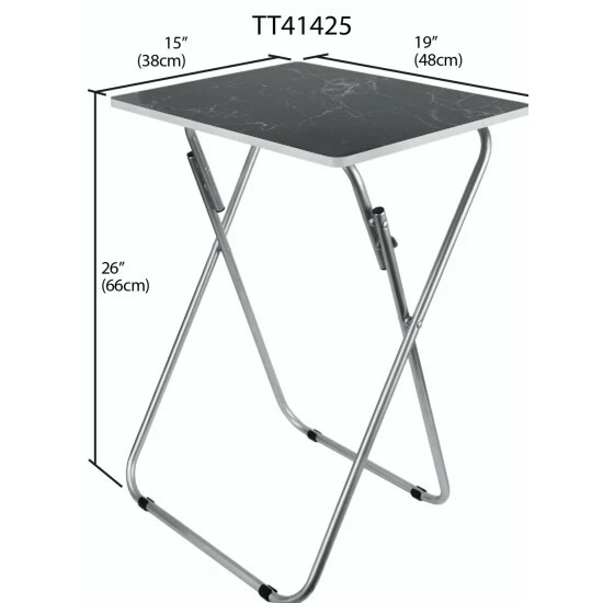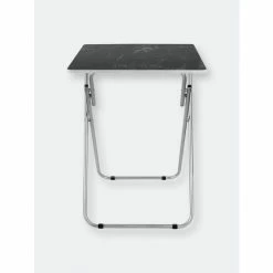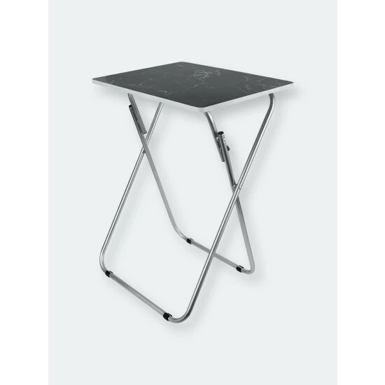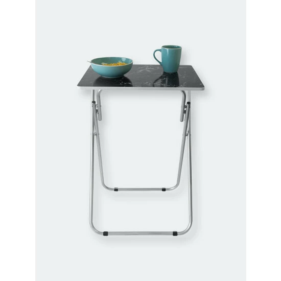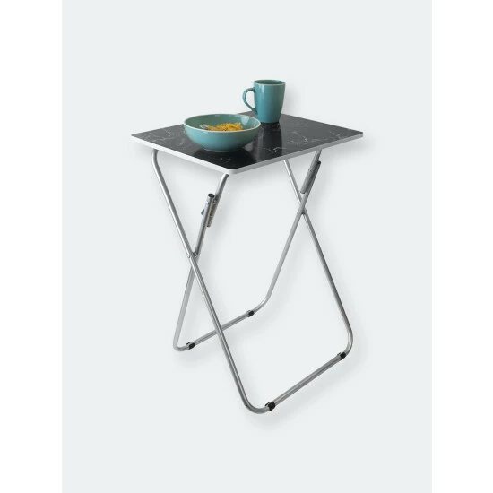 Set a colorful selection of your finest cuisine on the smooth marble surface of this folding multi-functional table. Then add in a set of leather seats in the equation and you’re sure to wow your guests with your penchant for all things posh and classy. The rich veined marble-like top, lends a contemporary flair, making it perfect to coordinate with a variety of decor. Equipped with steel legs and a MDF top, it’s perfect to use indoors or out. It easily folds to store away when not in use. Item dimensions may differ slightly due to the unique nature of the product. Color and finish may also differ from images shown due to differences in monitor displays. Props and accessories are not included.