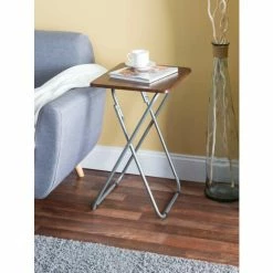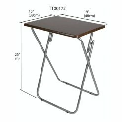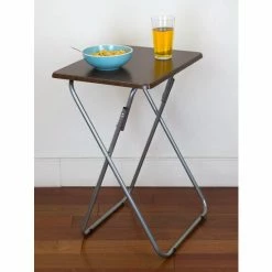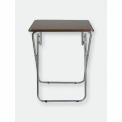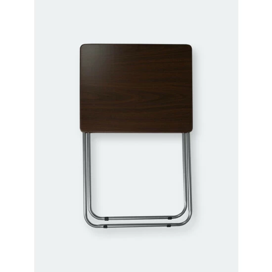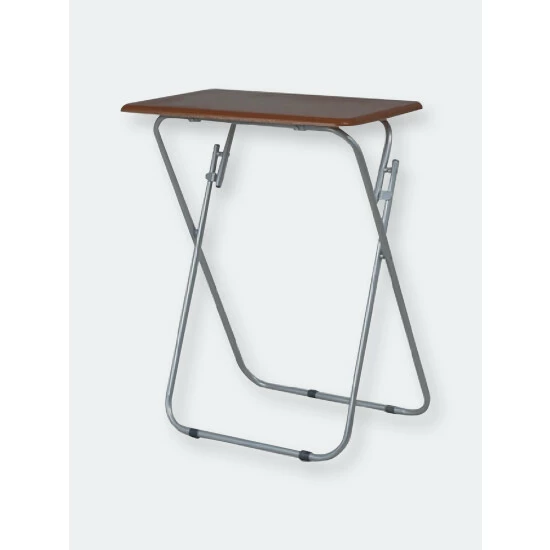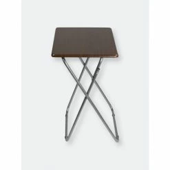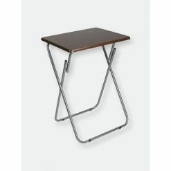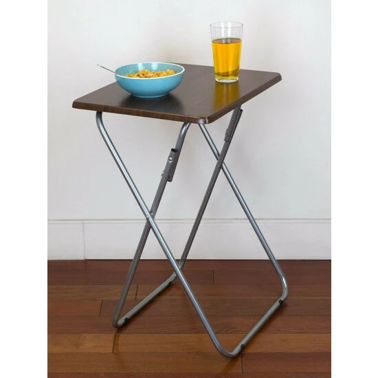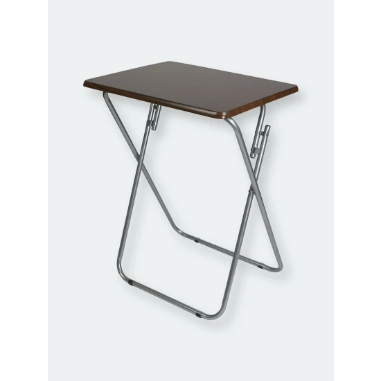 A portable table whenever and wherever you need it. Looking to change it up and enjoy your meal Prop it in front of the television, so you’ll never miss a minute of your favorite show or movie. The top features a wide surface area to easily accommodate a full-size plate, utensils, a glass of your favorite beverage, with room to spare to keep your remote close at hand and your phone within your grasp. Or use it for extra serving space to display a colorful array of hors d’oeuvres outdoors. The table conveniently works as a No wobbling whatsoever with this high-end table! It’s crafted of solid wood and rests on sleek, but sturdy stainless steel legs that enable it to be used on a variety of floor surfaces. In addition to its durable construction, it features a richly grained designed surface top with a simple silhouette that will enhance any décor. The table folds flat in a sleek footprint to conserve precious storage space. Item dimensions may differ slightly due to the unique nature of the product. Color and finish may also differ from images shown due to differences in monitor displays. Props and accessories are not included.
