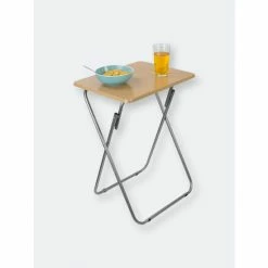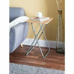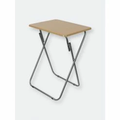 A portable table whenever and wherever you need it. Looking to change it up and enjoy your meal Prop it in front of the television, so you’ll never miss a minute of your favorite show or movie. The top features a wide surface area to easily accommodate a full-size plate, utensils, a glass of your favorite beverage, with room to spare to keep your remote close at hand and your phone within your grasp. Or use it for extra serving space to display a colorful array of hors d’oeuvres outdoors. The table conveniently works as a No wobbling whatsoever with this high-end table! It’s crafted of solid wood and rests on sleek, but sturdy stainless steel legs that enable it to be used on a variety of floor surfaces. In addition to its durable construction, it features a richly grained designed surface top with a simple silhouette that will enhance any décor. The table folds flat in a sleek footprint to conserve precious storage space. Item dimensions may differ slightly due to the unique nature of the product. Color and finish may also differ from images shown due to differences in monitor displays. Props and accessories are not included.
