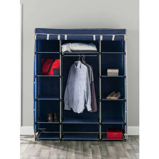 Sometimes a single closet isn’t enough to store away your household essentials and your extensive wardrobe. Which is why this convenient free standing storage closet provides you the ample space to keep your favorite attire, knick knacks, household supplies, and more protected and organized with this free standing closet. At 67 inches in height with 13 open shelves you can enjoy having plenty of room to store folded linen, towels, sweaters and more. A metal rod along the center of the closet lets you easily hang delicates, garments or formalwear, while the zipper closure and polyester construction ensure items are hidden and protected from dust.