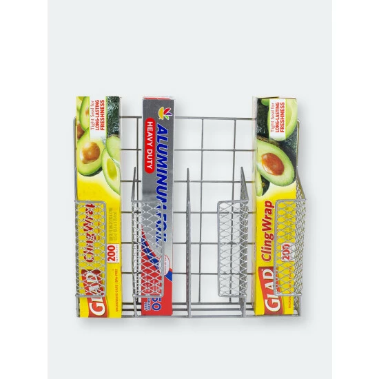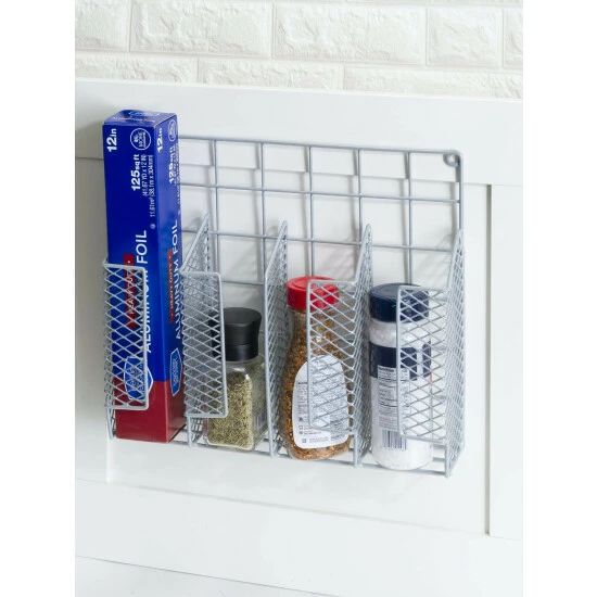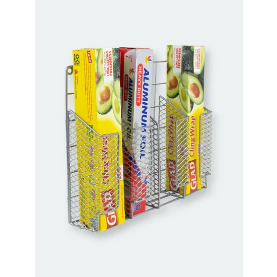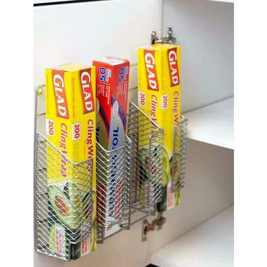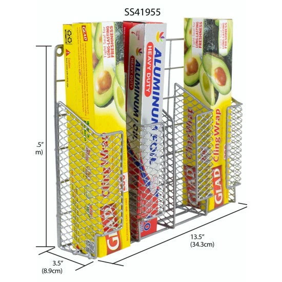 – Designed to love and last: made of rust-proof vinyl coated steel, the organizer mounts on an interior cabinet door to maximize space. With four compartments you have plenty of space to organize foil, plastic, wrap and more.