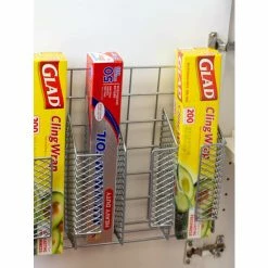 Need a solution for your storage and pantryware dilemma? From foil, parchment paper, and sandwich bags this vinyl coated steel organizer keeps them all in one, organized spot. 4 compartments are positioned vertically making it easy to see and grab what you need. Clip it onto an interior cabinet door, and enjoy gaining that precious countertop space back.
