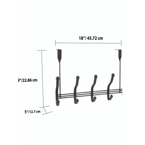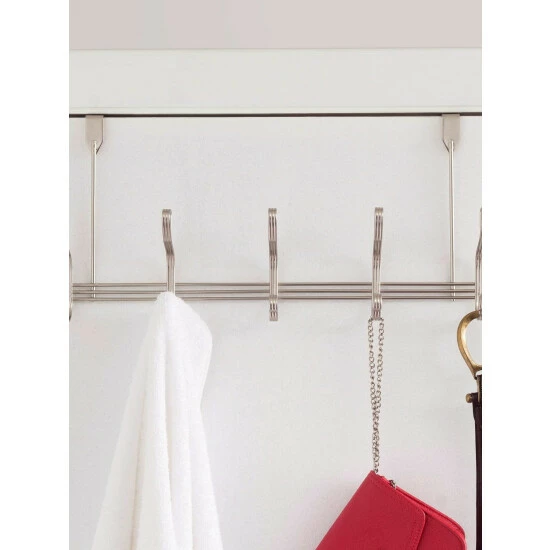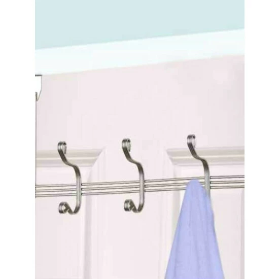 Hang and store Towels, coats, clothing, and other house hold items. Made from heavy duty brushed satin nickel steel. Rust resistant. Hangs easily on any standard size door. Maximize your storage.