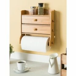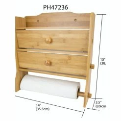 This all-in-one paper towel holder with integrated plastic wrap dispenser is perfect for keeping a neat and organized cooking space. You’ll never have to deal with cluttering up your countertops to display a paper towel roll or have to deal with rummaging through disastrous drawers to find your plastic wraps and foils. This handy kitchen must-have keeps it all in one centralized location and saves you space with its wall-mounted design. The bottom rod accommodates a single paper towel roll, so you’ll have easy to access to paper towels when you need to clean up everyday messes. From aluminum foil to plastic wrap, the two drawers accommodates up to two full size rolls. It features natural finish that will coordinate perfectly against that stark kitchen wall.