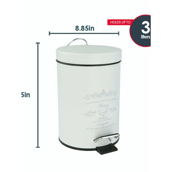 With this elegant Paris design waste bin, even when you stash your trash it will still be a showstopping decorative piece. A step activated lid adds convenience, by keeping garbage and its unsightly odors solely within the confines of the interior plastic bucket. Easily remove the bucket by lifting the metal handle to clear the contents then slide it back inside when finished. The non-skid base also prevents the bin from slipping or tipping over, making it great to use within or outside your home. Holds 3 liters of garbage.