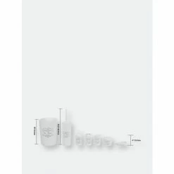 - Dimensions: Toilet Brush 13L x 3.75W x 3.75H; Toilet Brush Holder 3.8L x 3.8W x 8.4H; Toilet Brush Holder w/ Toilet Brush 3.8L x 3.8W x 13.75H; Tumbler 2.75L x 2.75W x 3.9H; Toothbrush Holder 2.75L x 2.75W x 4.4H; Soap Dispenser 3L x 3W x 5.75H; Soap Dish 3.75L x 5W x 1.25H; Cotton Ball Dispenser 3.75L x 3.75W x 2.95H; Trash Can 7.75L x 7.75W x 9.5H
