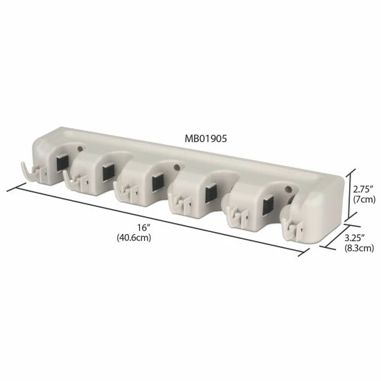 The multi-purpose hanging organizer conveniently hangs everything from cleaning supplies and kitchen tools with its 6 slot and 6 hook design. It adjusts to the handle’s thickness and grips firmly to keep it in place. The wall-mounted design provides you easy access to store and grab brooms, dustpans, and mops, while also freeing up closet space.Use in a kitchen or utility room, laundry, garage or basement. Simply lift to remove.