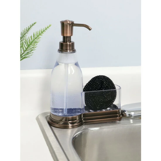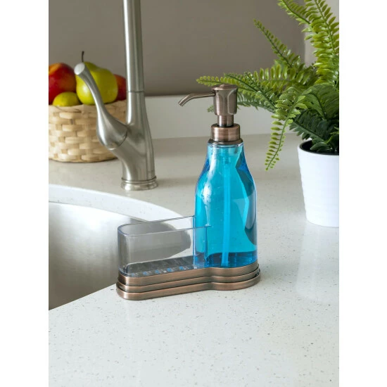 You’ve been through many soap dispensers and they never seem to meet your expectations. It’s either they slip-around on that porcelain vanity, fall apart, or rust easily! Lucky for you, this soap dispenser with brushed steel top is built to last and looks lovely right along side your sink. The steel bottom keeps it in place, while the high-efficiency pumps features a smooth-as-silk finish to make dispening quick and easy. The reservoir offers a generous capacity, so you’ll never have to worry about constant refills. But should you need to, the clear base lets you know how much is left. Simply unscrew the top to refill. Tap the steel pump lightly to dispense a small portion to quickly clean your hands. Or tap it all the down to clean up those mountain of dishes you’ve been putting off for days. The soap dispenser also features a fixed sponge holder to keep a sponge handy.