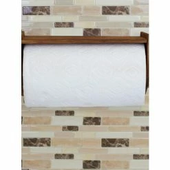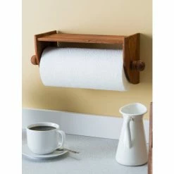 Free up extra space with this quick and easy to install wall mount wood paper towel rack. Comfortably holding all types of size paper towel rolls, it comes with mounting hardware for easy set up right out of the packaging. The knobs at the end of the bar unscrew allow you to slip on a roll. The top also doubles as a practical storage shelf for storing you must-have kitchen items or as a creative decorative display above the sink. Spot clean.