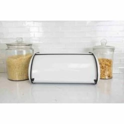 A countertop space saver, our roll top bread bins offer a compact profile and a contemporary sleek design. The large capacity provides plenty of room to hold up to two loaves and is great for storing muffins, batches of cookies or any baked goods you like. It opens and closes smoothly with a dark interior to keep your bread and baked treats super fresh. With its sleek style and protective trim, the bread bin will not only be lovely addition to the kitche but will also keep your surfaces protected from scratches.- LARGE CAPACITY: From flaky loaves to tasty dinner rolls, keep bread and other baked snacks fresh and flavorful. The generous size interior allows you to fit a full loaf of bread with room to spare for cookies.- COUNTER-TOP SPACE SAVER: A lighter and sleeker alternative to traditional wood bread boxes, our line of roll-top bread bins rests squarely on the countertop, taking little room and offers a roll-top door that retracts smoothly and closes tightly.- SMOOTH LIFT UP LID: No need to deal with the hassle of removing the lid to grab what you need. For quick grab and go access, our bins function on a roll-top lid that opens smoothly yet closes firmly when not in use.- DESIGNED TO LOVE AND LAST: Made of sturdy steel, the bread bin offers a compact profile and contemporary sleek design- EASY TO CLEAN: Hand wash for easy maintenance. To keep your bread bin looking its best, simply hand wash with warm water and mild soap and dry thoroughly. Or wipe it down clean with a damp cloth. The mirror finish inhibits smudges and streaks, making upkeep very simple and effortless.- COMPLETE THE LOOK: Pair this piece with our line of durable bread knives that slice through loves of all types with ease