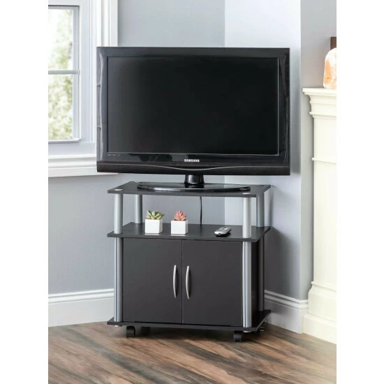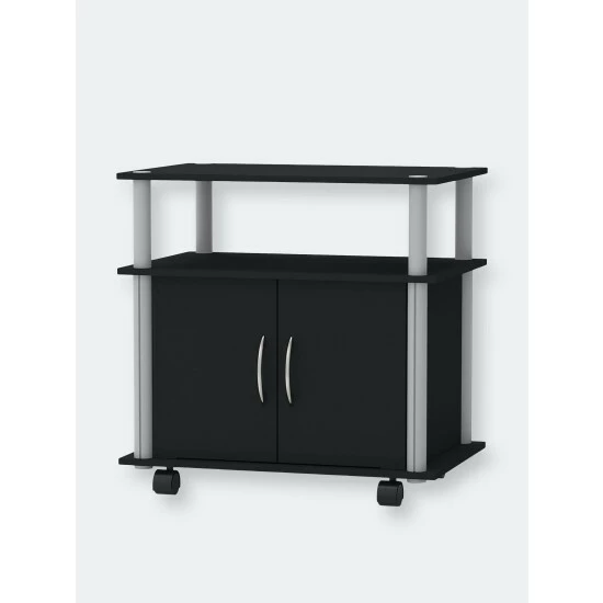 From home holiday gatherings to making your work set up more organized, this TV stand with wheels is both a stylish and functional piece of furniture. Made of solid wood with a sturdy steel frame this rolling stand is versatile enough to fit your needs. Use it as a mobile tv stand with wheels or as movable workstation. The large top has plenty of room to store a TV with closed compartments to hide all your AV equipment. Perfect for recreational rooms, garages, studios, kitchens, living rooms, and more.