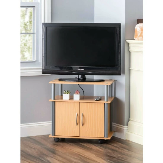 From home holiday gatherings to making your work set up more organized, this TV stand with wheels is both a stylish and functional piece of furniture. Made from chipboard with a sturdy frame this rolling stand is versatile enough to fit your needs. Use it as a mobile tv stand with wheels or as movable workstation. The large top has plenty of room to store a TV with closed compartments to hide all your AV equipment. Perfect for recreational rooms, garages, studios, kitchens, living rooms, and more.
