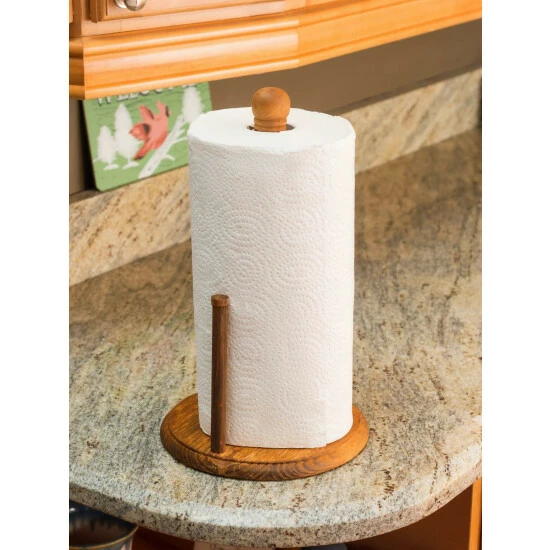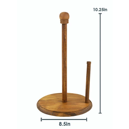 Welcome in rustic elegance, while keeping paper towels close at hand with this free standing wood paper towel holder. A wide sturdy base keeps the holder in place even in windy conditions, while the dowel along the side of the lets you easily tear a single sheet without having the holder tipping over in the process. With its free standing design you have the freedom to place it wherever you heart desires. Use the paper towel holder outdoors for the annual family picnic at the park. Or place it on top of your counter to have paper towels at the ready for everyday spills.
