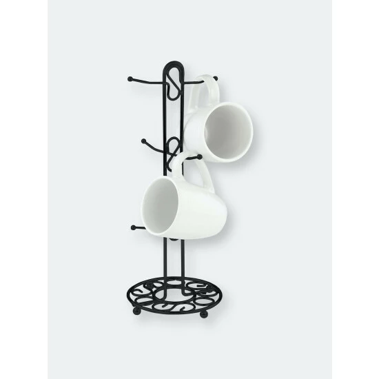 Durable for everyday use, while at the same time elegant for entertaining this steel mug tree provides a perfect way to keep your most cherished collection of mugs within reach. It’s constructed out of sturdy steel to prevent it from tipping with ball end branches that tilt upwards to ensure every cup remains in place with an intricate scroll pattern for a traditional touch. Each hook is spaced perfectly so that each mug doesn’t touch each other. Its slim profile takes advantage of small spaces. Easily store up to six of your favorite coffee mugs or tea cups. While great as a holder for all your mugs, it doubles as visually stunning kitchen art whether bare or fully stocked up with your collection of mugs. It also works equally well as jewelry rack where you can organize all your necklaces, bracelet, and other small accessories. If you’re looking for a mug tree to decorate your countertop while simultaneously keeping your favorite mugs close at hand, this is it!