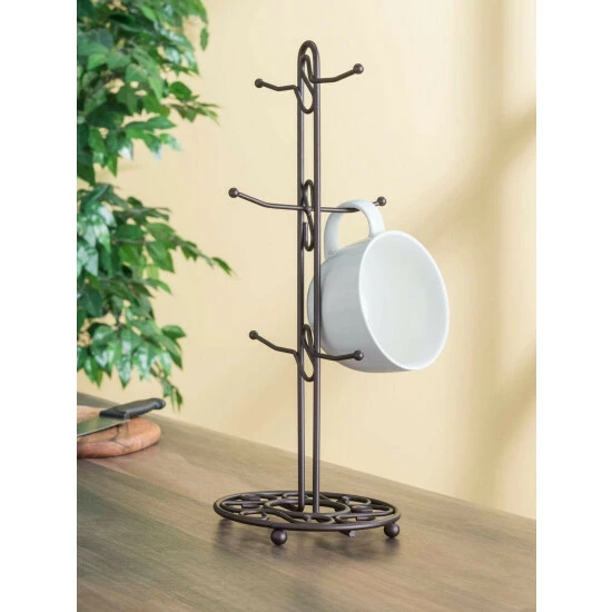 – Bronze scroll mug tree offers a sleek profile to organize and decoratively displays tea cups and mugs on a kitchen counter or table