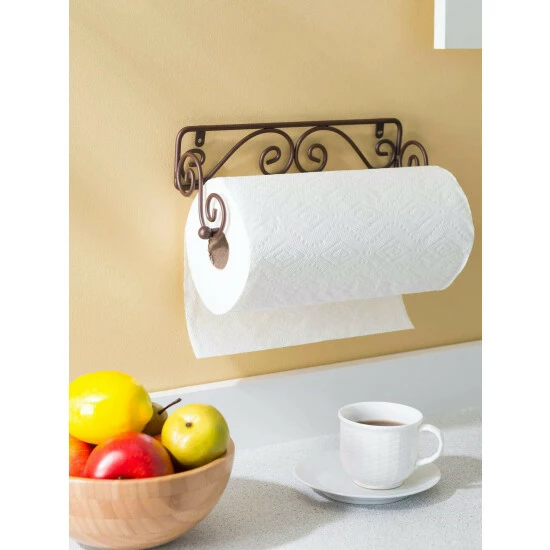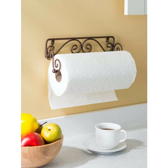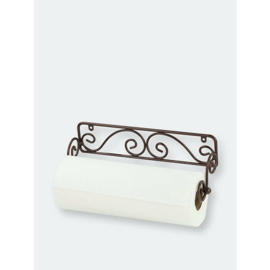 If an affinity for the finer things in life is more your style, then this elegant wall mounted steel paper towel holder just might be your match. Intricate bronze coated scrolls gracefully cradle a single paper towel roll, while the wall-mounted mechanism maximizes your counter space. Indulge in luxury and show your sophisticated side with this classic piece.