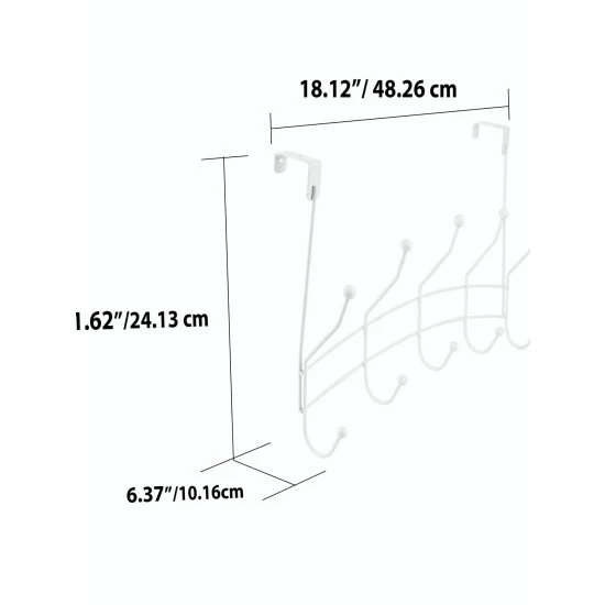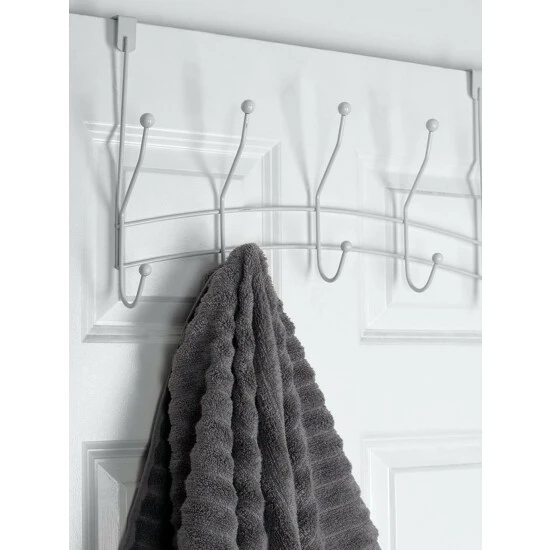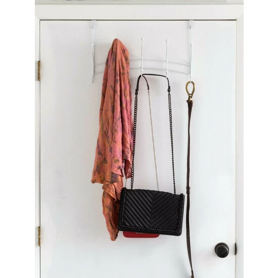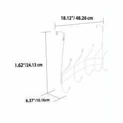 – 5 Dual Hook Style Hanging Rack: 5 hooks span vertically across. It’s conveniently sized to be placed over an interior door, providing quick access to items such as your pet’s leashes, selection of scarves, bulky robes, and everyday clothes.