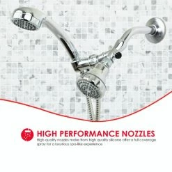 reat yourself to relaxing shower with this contemporary styled shower massager set. With two shower heads you can use each shower head independently or together for an even refreshing shower experience. The convenient 5 ft long tangle free hose for ample control when showering or cleaning. This highly efficient shower massager is equipped with an average 1.72 GPM flow rate, saving you money on your water bill, while still delivering a rejuvenating experience.