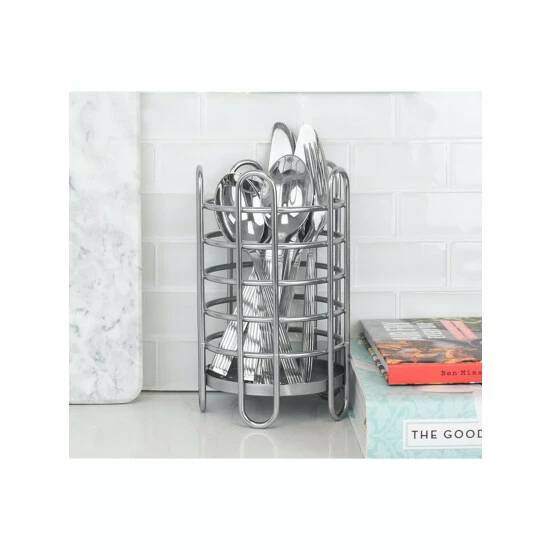 A great way to clear up the tabletop clutter and free up room on your dish rack, use this standing utensil and cutlery holder from the simplicity collection to neatly corral a hefty load of cooking tools or air dry a bundle of silverware. The freestanding design positions items upward to make them easier to find, while holes along the bottom quickly drain utensils. While great for the kitchen, you can also use it as a decorative holder to organize office and small craft supplies.