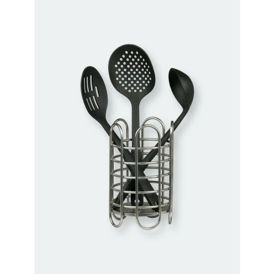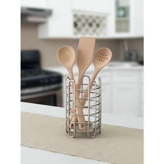 A great way to clear up the tabletop clutter and free up room on your dish rack, use this standing utensil and cutlery holder from the simplicity collection to neatly corral a hefty load of cooking tools or air dry a bundle of silverware. The freestanding design positions items upward to make them easier to find, while holes along the bottom quickly drain utensils. While great for the kitchen, you can also use it as a decorative holder to organize office and small craft supplies.