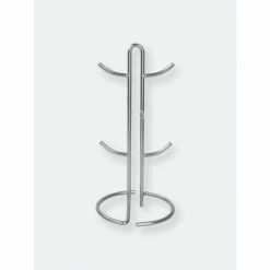 Clear up cupboard space by displaying your collection of cups on this sturdy and modern mug holder. Easily store up to six of your favorite coffee mugs or tea cups. The holder is elegant and minimalistic with a crisp, brushed satin finish that adds a beautiful contemporary touch to your kitchen. It’s constructed out of sturdy steel to prevent it from tipping with ball end branches that tilt upwards to ensure every cup remains in place. Each hook is spaced perfectly so that each mug doesn’t touch each other. Its slim profile takes advantage of small spaces. While great as a holder for all your mugs, it doubles as visually stunning kitchen art whether bare or fully stocked up with your collection of mugs. It also works equally well as jewelry rack where you can organize all your necklaces, bracelet, and other small accessories. If you’re looking for a mug tree to decorate your countertop while simultaneously keeping your favorite mugs close at hand, this is it!