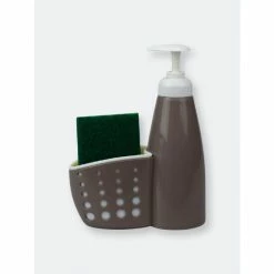 Skip the conventional soap dispensers and holders that clutter up your counters. Beautifully corral your favorite fragrant dishwashing soaps and keep your sponge handy with this soap dispenser with integrated soap holder. Perfect for when you short on sink space, it features an affixed sponge holder (sponge included) with draining holes that allow water and soap to freely pass through. Which means: You don’t have deal with the tiring task of wringing out the sponge. Or worrying about water and bactering sitting at the bottom. And with a 20 oz. capacity it provides just the right amount dish soap to clean up a hefty load of dishes.