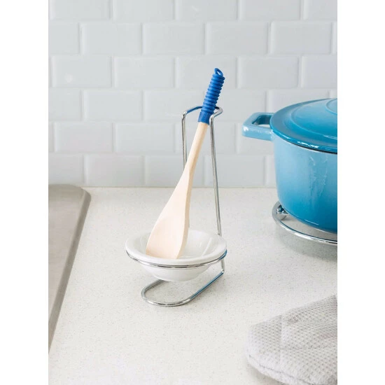 Cooking and baking can often be a messy task, but it doesn’t have to be when you have this wooden spoon rest set at your side. The spoon rest positions utensils upright to allow for liquids to drain in the ceramic bowl to make clean-up a breeze. You can also use the ceramic bowl also as a mixing bowl to prep ingredients. The included wood spoon is also great for stirring and mixing as well. With a compact design, it fits neatly on a countertop without taking up too much space.