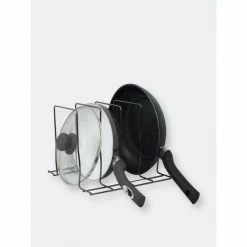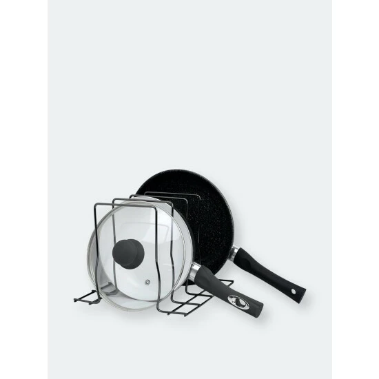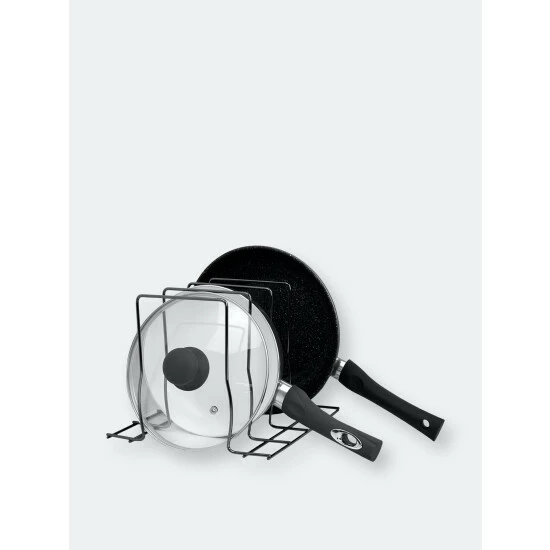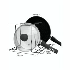Instead of scouring through your cluttered cabinet, to find the matching lids for your cookware, stack it on this steel lid rack to have them readily available for you next culinary quest. Designed with small spaces in mind, this rack fits neatly in the corner of the countertop without taking up too much space, so you’ll have easy access to your cookware anytime. The rack holds up to four lids vertically upright so they are easy to grab and spot when needed. Get your collection of cookware organized with this four slot lid rack.