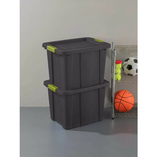 The new latching tuff1 totes are durable even in colder environments and are ideal for storing items in the garage, shed, or basement areas. These rugged totes are a great storage solution for camping supplies, sporting equipment, and seasonal items. Indexed lids offer secure stacking capabilities for efficient use of vertical space and the channeled walls provide added strength to help support heavier loads. Robust latches securely attach the lid to the base and provide a comfortable grip for transport.