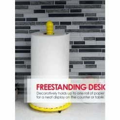 Freshen up your tablesetting with the cheerful patterns of this free-standing floral Paper Towel Holder. Crafted from heavy duty cast iron, the weighted structure makes it great for dining al afresco, while the ornate sunflower patterns makes it chic addition to everyday dining. The free-standing design makes it easy to place anywhere and the side dispensing bar makes it great for tearing an even sheet. (Paper Towel Roll not included).