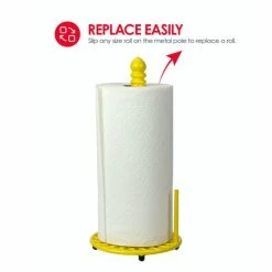 – Simple to Use and Easy to Reload- No more wasting time screwing and unscrewing a finial. Slip any size roll on the metal pole to replace a roll. Or simply slide it out to remove.