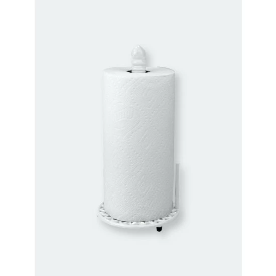 Freshen up your tablesetting with the cheerful patterns of this free-standing floral Paper Towel Holder. Crafted from heavy duty cast iron, the weighted structure makes it great for dining al afresco, while the ornate sunflower patterns makes it chic addition to everyday dining. The free-standing design makes it easy to place anywhere and the side dispensing bar makes it great for tearing an even sheet. (Paper Towel Roll not included).