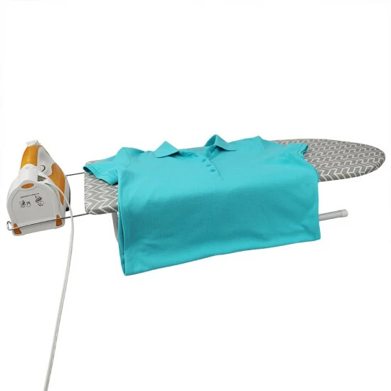 A perfect addition to small apartments and dorms this tabletop ironing board is conveniently sized at 33.5″ x 12″ x 3.5″ to fit neatly on top of a counter of table. Use it at home or bring it with you on the go to keep everything from your collared shirts crisp from collar to cuff. It is made of durable plastic and metal and equipped with non-skid feet to ensure it stays in place as you iron away. The ironing board conveniently folds flat to conserve even more space.