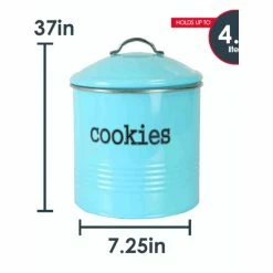 Relish in your beloved baked treats and stow them away in vintage cool style with this tin cookie jar. Whether home-baked or store bought, your favorite cookies and your kitchen will benefits from the vibrant finish and chic beveled detailing, classic cookie Jar label, and vibrant evident in this Tin Cookie Jar.With its 4.2 liter capacity enjoy filling it to the brim with a full batch of your favorite sweet treats. The jar is fashioned in a yesteryear motif that will delight your home with classic simplicity.