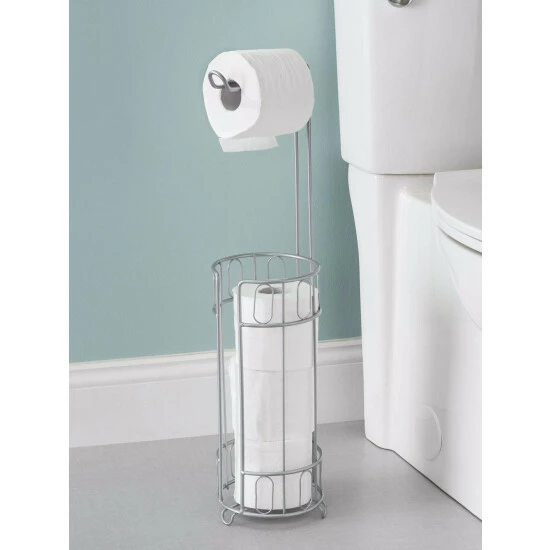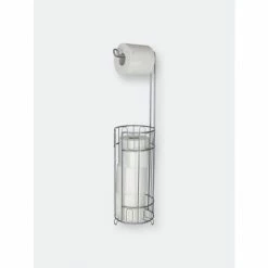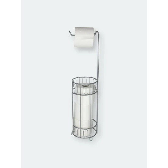 Display this elegant toilet paper reserve alongside your toilet or in the corner of the bath for easy access to toilet paper. The top dispenses a single roll, while the reserve keeps spare handy just in case. The free-standing structure features raised feet keeping toilet paper off the floor where it can easily get dirty.