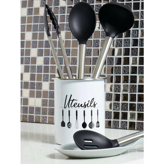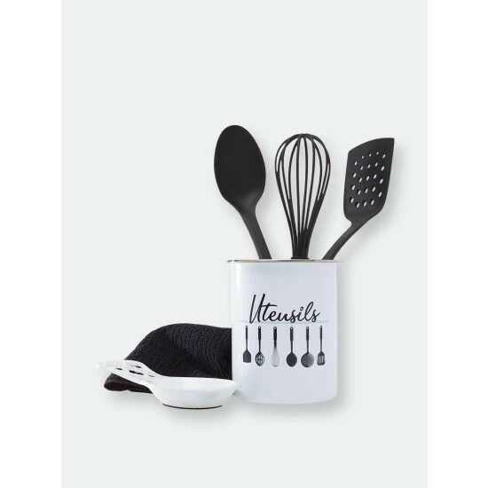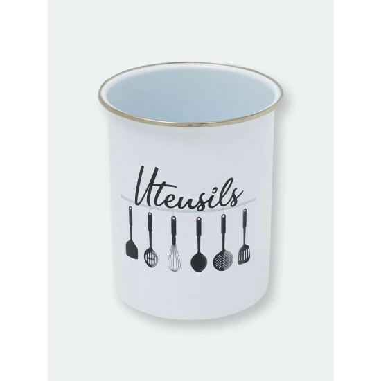 You won’t have trouble locating your spatula when you want to whip up a quick breakfast omelet before work. With utensils spelled across the front and pictures of the common tools you find yourself using you’ll be able to grab what you need to make a memorable meal. Item dimensions may differ slightly due to the unique nature of the product. A heavy weighted base keeps everything in place. Fill the spacious interior with your cooking spoons, whisks, spatulas, and ladles. It’s generously sized keeping a whole bunch utensils handy and at the ready for your next recipe. Place on top of your countertop or near your stovetop, so you can grab the tool you need instead of rummaging through a crowded drawer. Color and finish may also differ from the images shown. Props and accessories are not included.