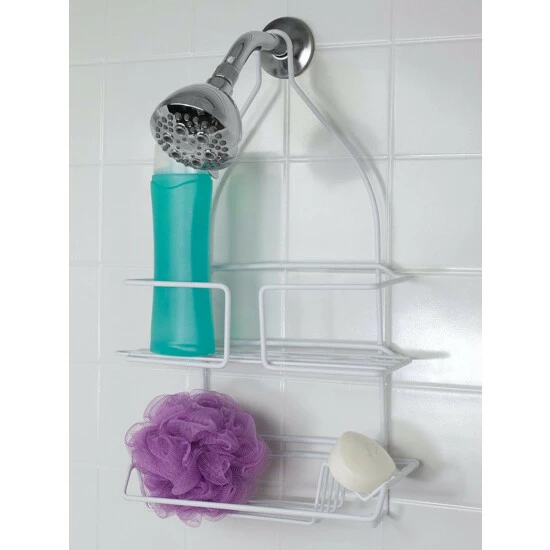 – Self-draining baskets keeps bath and shower accessories clean and dry