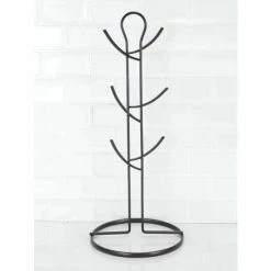 A simple storage solution to display your collection of favorite mugs, while offering the contemporary flair you love. This minimalist mug stand has all the characteristics to enhance your kitchen. Delicately curved metal branches sit atop the sleek looped metal rod to provide an all-around view of up to six mugs. The slim profiles fits seamlessly in confined counter tops or tables with limited space. From your counter top to your picnic table, its rounded top makes it easy to display just about anywhere.