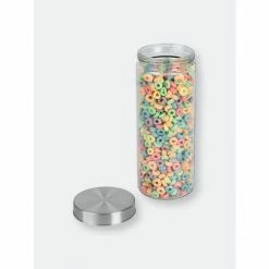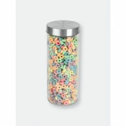If you want to ensure the longevity and freshness of your coffee beans and grinds, rice, sugar, flour, pasta, consider adding this contemporary round shaped glass canister with stainless steel lid. This nifty storage container features a heavy duty glass base with a clear finish, so you’ll never have to guess when it’s time for a refill. The brushed stainless steel lid offers an air-tight seal locking in all the freshness and flavor within its sturdy structure. While perfect for organizing the pantry, you can use this versatile jar in other areas of the house and for decorative purposes. Use it in the bathroom to corral your collection of cosmetics and accessories. Keep one in the utility closet to store gadgets, tools, and office supplies. You can easily transform this empty jar into a chic decorative piece for any party, by filling it with bite sized candy and other fun treats. For countertop worthy canister this one is a must!