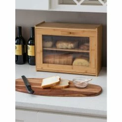 Home Basics 2 Tier Bamboo Bread Box With Peek-Through Acetate Window, Natural Storage & Organization